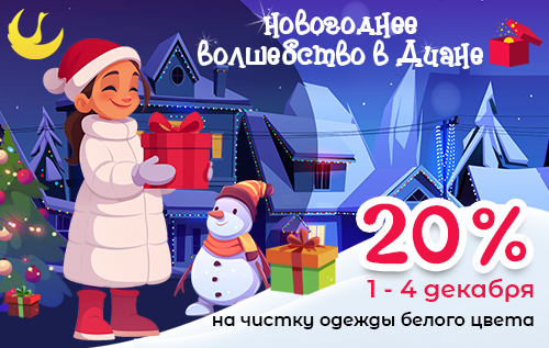 С 01 по 04 декабря скидка 20% на чистку одежды белого цвета