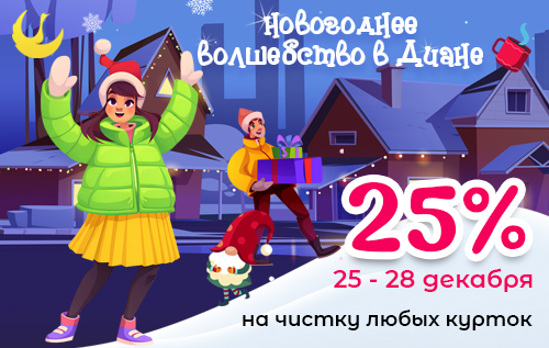 С 25 по 28 декабря скидка 25% на чистку любых курток