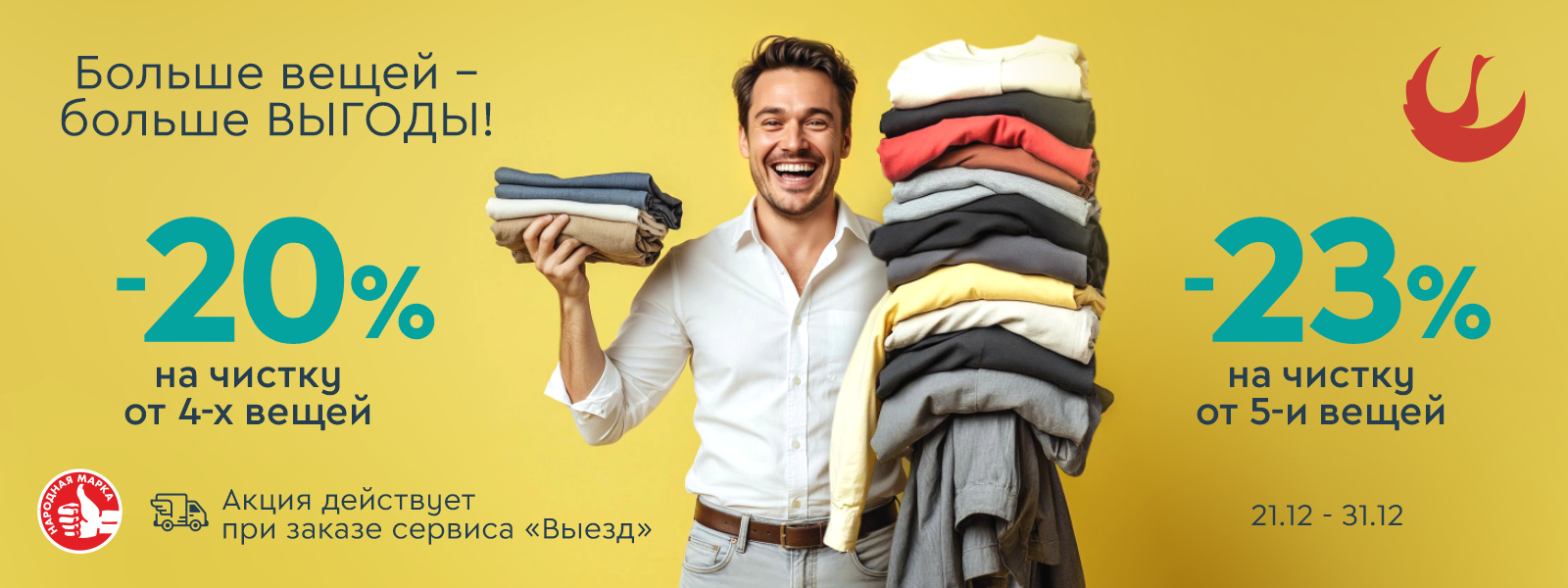 1. Размер скидки составляет 20% и 23% и распространяется на заказ услуги химчистки всего ассортимента от 4-х или 5-ти и более изделий, за исключением ассортимента, который вынесен в пункт: «Скидка не распространяется»!